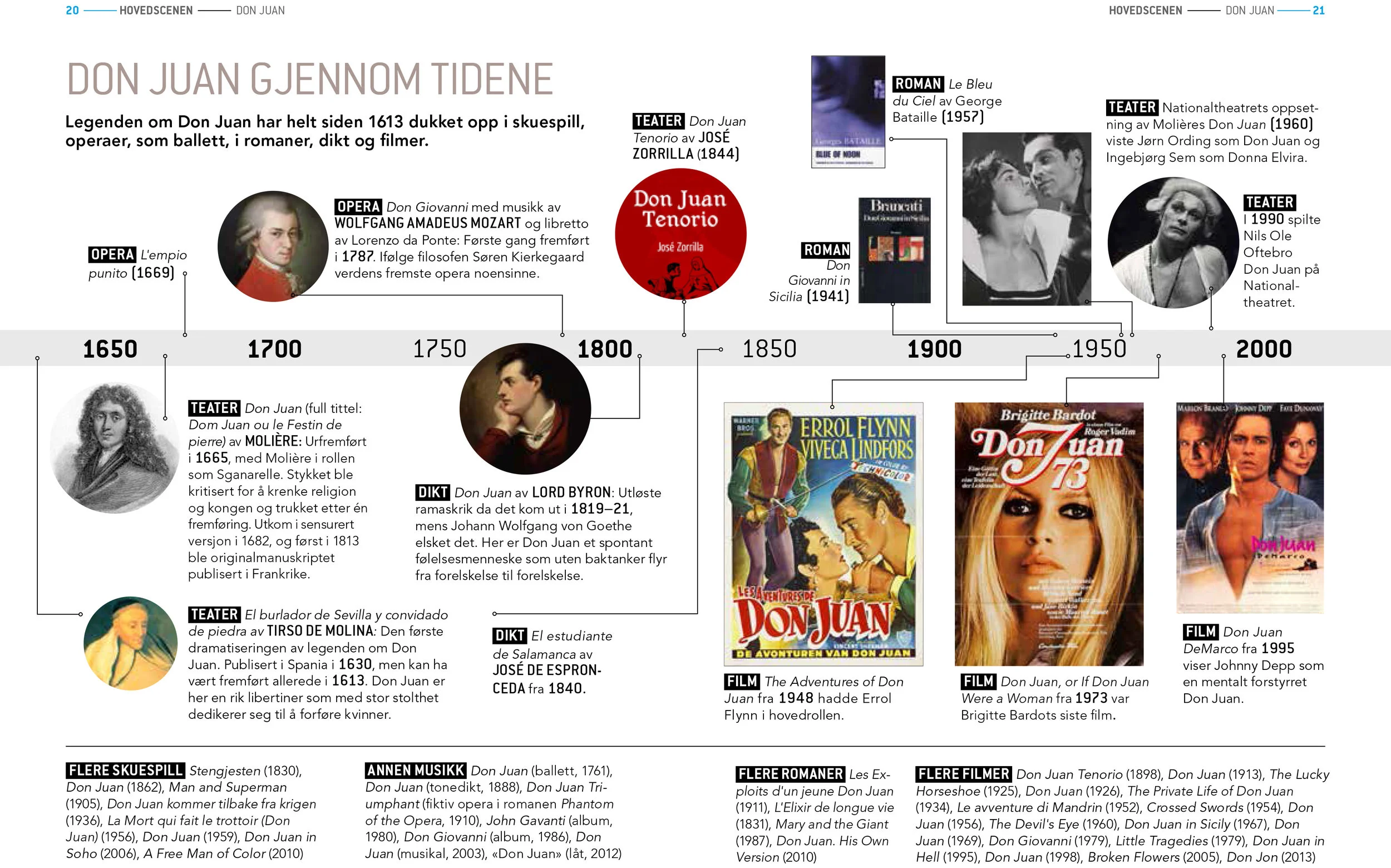 Don Juan gjennom tidene – på teater, film, i bøker, opera og annen musikk. Layout: Sigurd Østensen