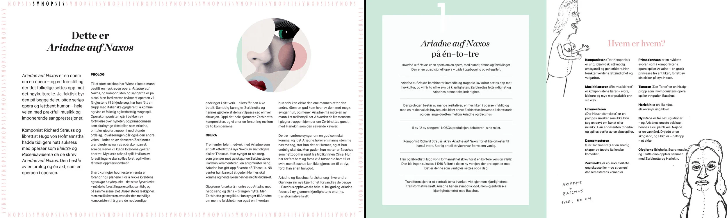 Utdrag fra Ariadne auf Naxos-programmet på 32 sider. Illustrasjoner: Wakka Wakka, design: Tank